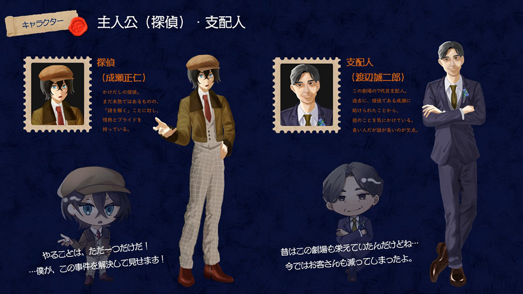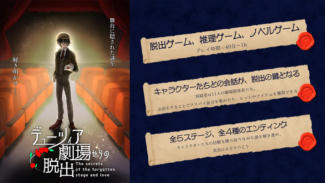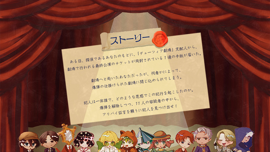ある日、探偵であるあなたのもとに「デューツィア劇場」の支配人から、劇場で行われる最終公演のチケットが同封されている一通の手紙が届いた。